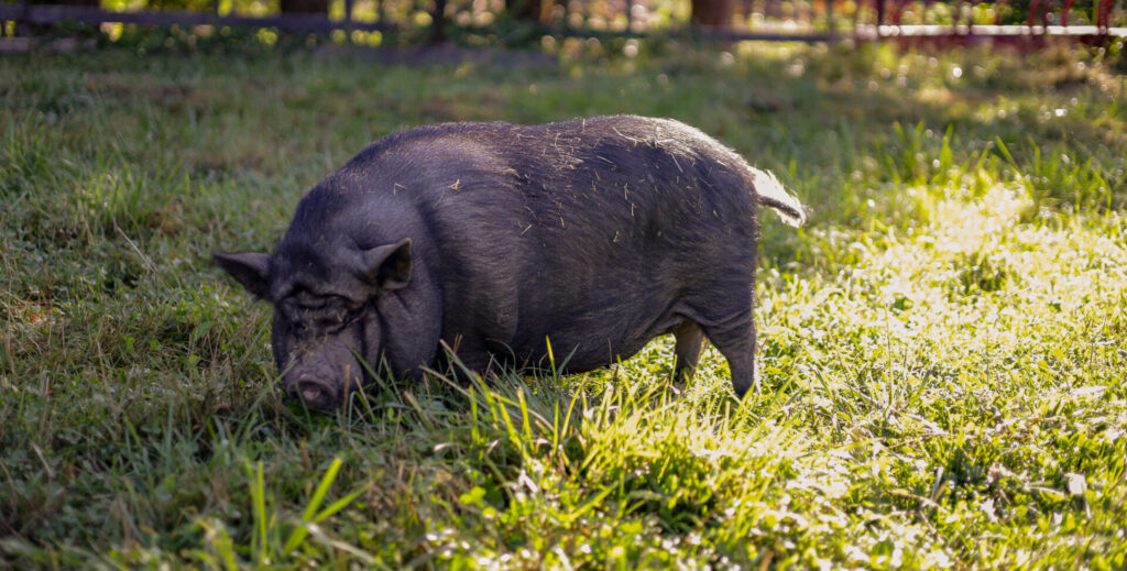 Winston came to us as a four-day-old orphaned piglet. His mother and three siblings passed away at or shortly after
