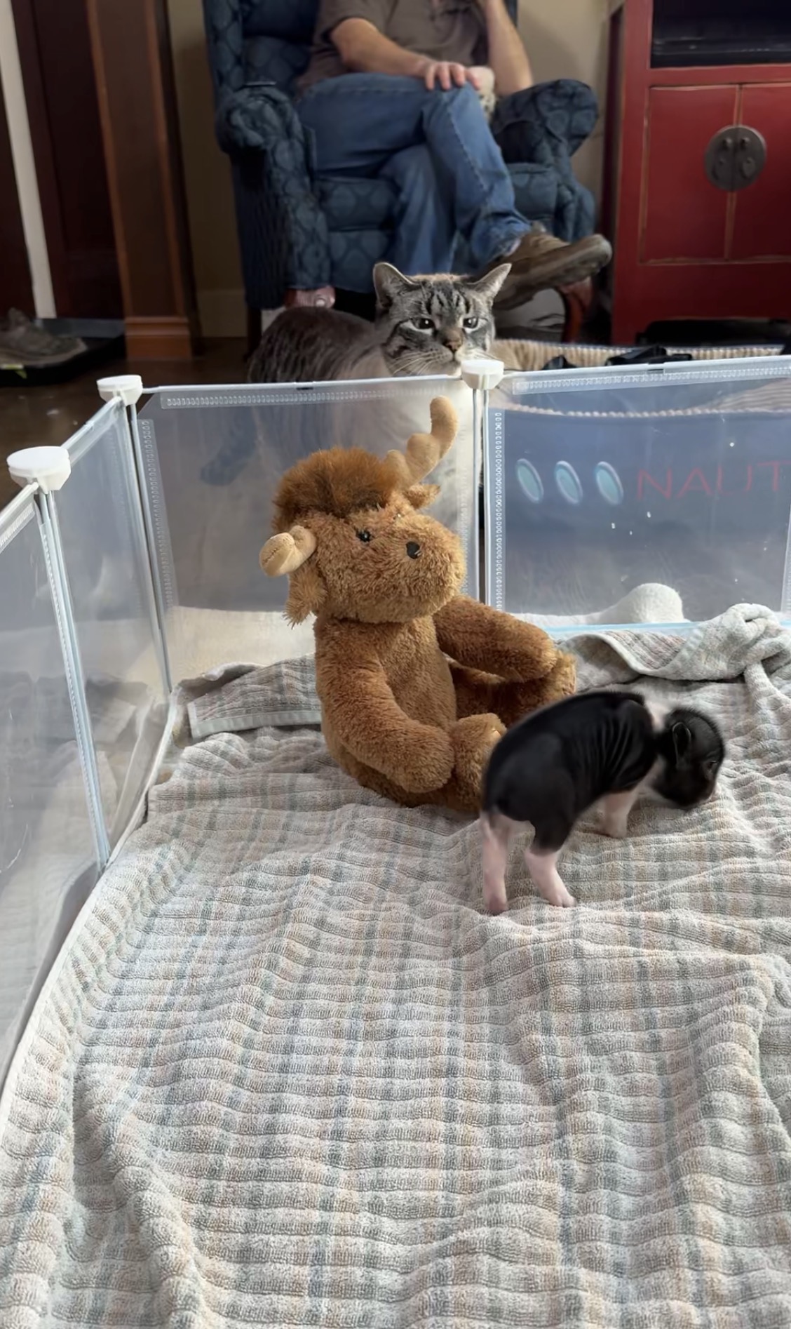 Thanks to experience raising other fragile newborns like Garth and more recently Chloe, we were prepared. A playpen was set up in the living room, bottles and milk replacer were ready, and the every-two-hour feeding schedule began immediately.
